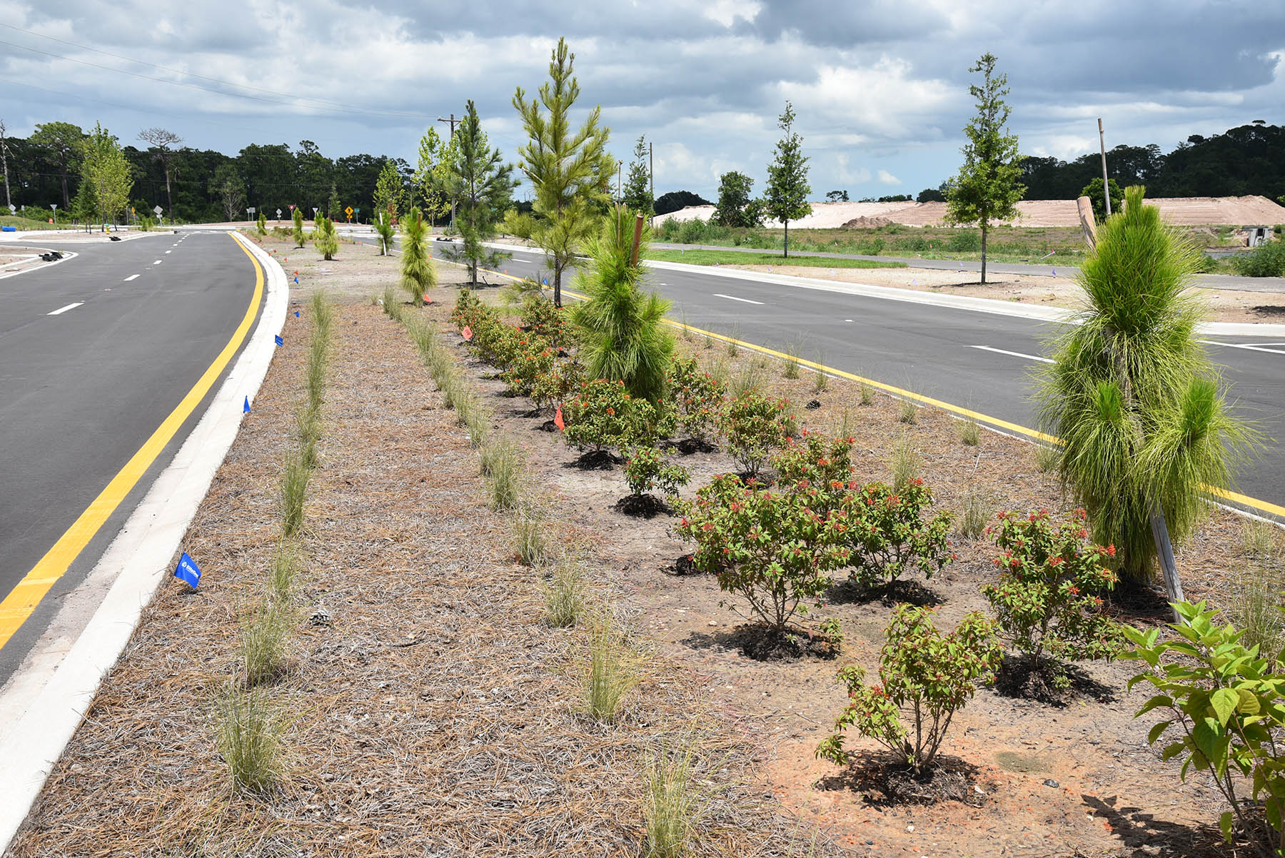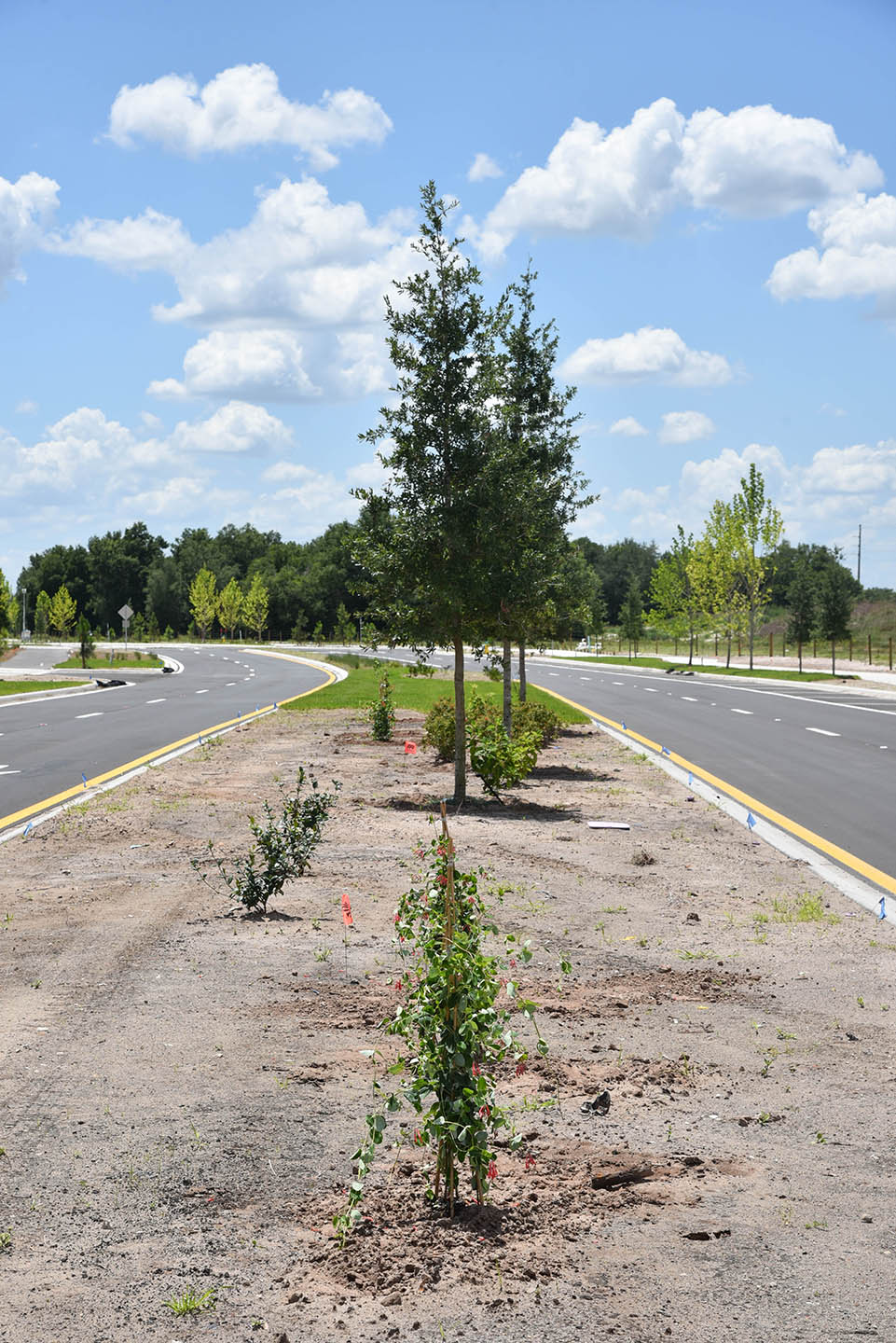 Discover a tranquil sanctuary within Center Lake Ranch, a contemporary community situated on 1,000 acres of preserved uplands and lowlands in St. Cloud near Lake Nona. This community is dedicated to conserving nearly half of the land, complemented by parks, ponds, and walking trails. We undertook the landscape and irrigation installation for the nearly mile-long boulevard entrance of this master-planned community.